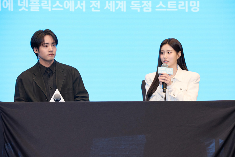 会見中、赤楚は「韓国で感じたことは?」と聞かれると、「僕は今回で4回目の訪韓になりますが、韓国はおもてなしの文化がすごいです。みなさんウェルカムで、奉仕の気持ちが素晴らしいなと思いました。人に対しての優しさは勉強になります。」とコメント。一方カン・へウォンは「作品の中で日本語のセリフも多くありますが、どのような準備をされましたか?」と聞かれると、「日本語の発音の録音ファイルを頂いて、朝、目覚めたらすぐ聞きました。慣れるまでずっと聞きました。」と回答。日本に行く2か月前から準備していたそうで、「赤楚さんが言語の違いがあるにも関わらず、いろいろ気遣ってくださって、この環境に慣れるように助けてくださいました。」ともコメントし、会話の端々から2人の息ピッタリな様子が伺えた。