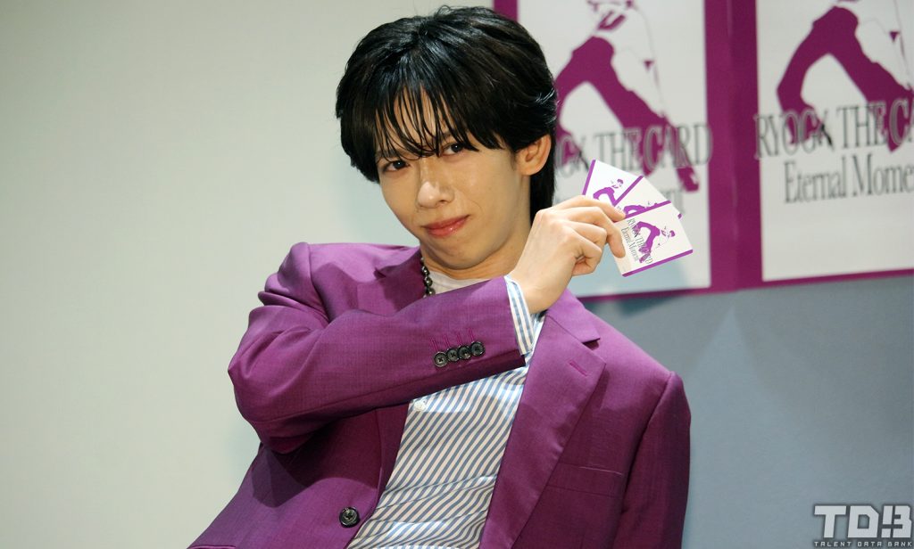 発売を記念して行われたマスコミ取材会に登場したリョウガは、トレカの魅力について「写真集じゃないんだ、というツッコミどころがあるんですけど。300種というとてつもない数をランダムで発売するという、自分の狙っている好きなカードが出るかという運試し要素もある遊び心があり。かっこいい姿、かわいらしい姿、時にはエモかったり、全てのジャンルを踏襲するようなトレカです」と話す。
