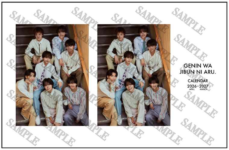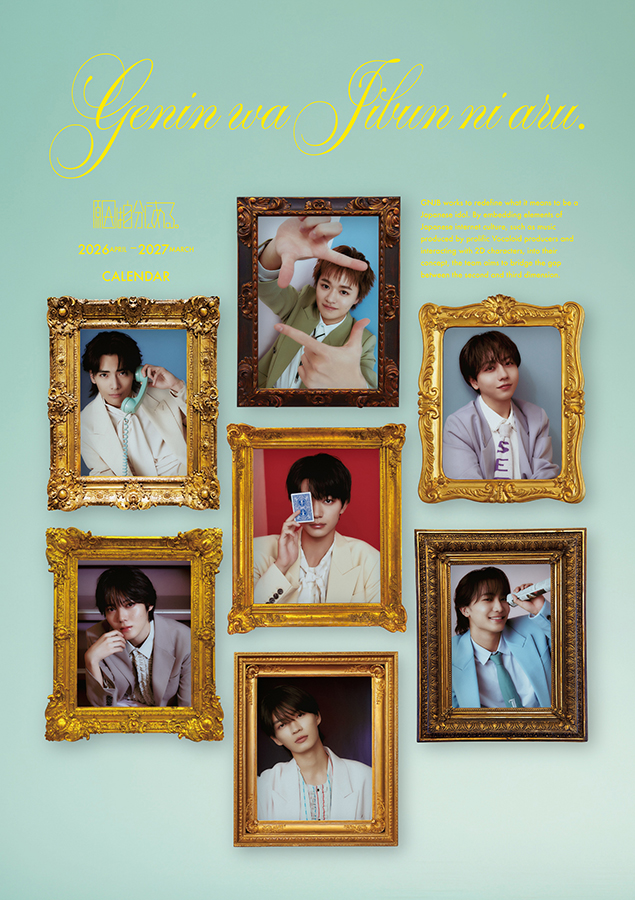 また、本カレンダーには、7月7日にデビュー7周年を迎える7人だからこそ実現した、“7”にちなんだ両面仕様の仕掛けも取り入れられている。月の数字を足して”7“になるページをつなぎ合わせると、裏面に7人集合ビジュアルが現れる……!?パズルのピースを組み合わせるように、”観測者(原因は自分にある。ファンの愛称)”だけが気づける“7”にちなんだ工夫が随所に散りばめられており、新しい発見が楽しめる仕掛けとなっている。裏面は日付を省いたビジュアルのみの構成となっているため、カレンダーとして楽しんだ後も、飾って楽しめる。ノンフィクションとフィクションの狭間にいるかのような独特の空気感の中で、色彩や構図、衣装までこだわり抜かれた世界観が、彼らならではの美しさを引き出している。デビュー7周年という記念すべき年に届けられる本作は、グループ初となるオフィシャルカレンダーとして、メンバー7人と“観測者”が同じ時間を共有し、特別な一年を共に過ごすための一冊。何度でも見返したくなるビジュアルと仕掛けを詰め込んだ、永く愛される保存版として仕上がっている。
