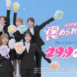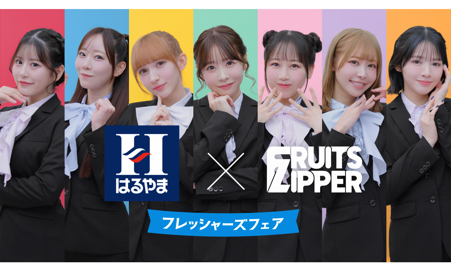 新TVCM「ニクキュー篇」では、全身「褒められスーツ」を身にまとったFRUITS ZIPPERの7人が、メンバーカラーの「ニクキュー手袋」をつけて登場!頭に手書きアニメーションの“猫耳”がぴょこんと生えたメンバー7人が「ほ!」「め!」「ら!」「れ!」「セ!」「ッ!」「ト!」とバトンのように声を繋ぎながら、それぞれの個性豊かな「褒められ顔」を次々と披露する。さらに、メンバー全員が画面中央に“キューッと”集まって密着!フレッシャーズ応援価格である“29,900円”を、FRUITS ZIPPERさんらしいキュートな“ニクキュー(=29,900)”ポーズとして表現し、カメラに向かって元気いっぱいの笑顔を届ける。スーツから靴まで全身揃う「褒められセット」の嬉しさを、7人ならではの弾ける笑顔でのパフォーマンスで表現するFRUITS ZIPPERに注目だ。