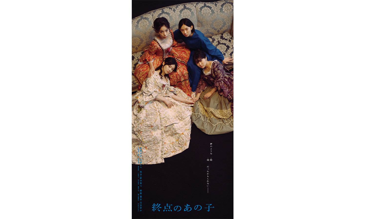 アザービジュアル6点がこの度解禁、通常ポスターとは違う縦長仕様の形状で統一されている。希代子・朱里・奈津子・恭子の4人がドレスを纏い見上げる写真では「夢のような時間(とき)だったかもしれないー」のキャッチコピー。ifを感じさせファンタジックな印象の1枚に。