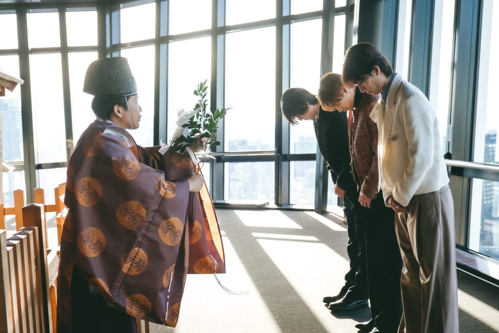 この日は山中、髙松、八重樫風雅監督が参加し、高さ150メートルの東京タワーメインデッキという象徴的なロケーションで、作品の成功を祈願する神事が執り行われた。また、劇中で主人公二人が通う高校「白岩高校」「紅桜高校」にちなみ、【紅白】も本作を象徴するキーワードの一つとなっている。日本の紅白のシンボルである【東京タワー】は、本作の世界観とも親和性が高く、今回のコラボが実現。祈願後には、山中・髙松が、作品の“成功”と“飛躍”への願いを込めて奉納した絵馬について言葉を寄せ、本作に懸ける想いや、公開を迎える心境を語った。