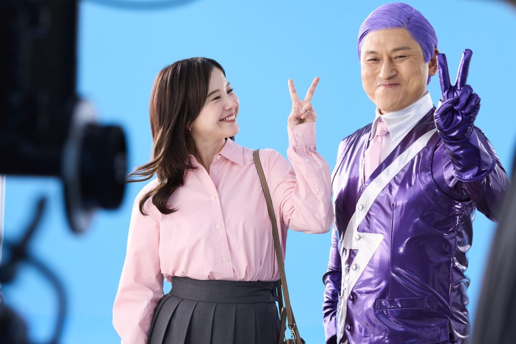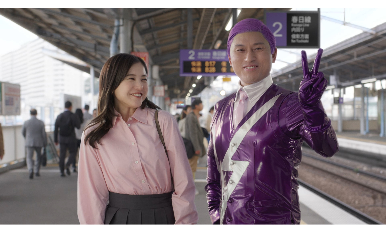 新アレグラ人「カスガーラ」として紫色の八二分けヘアに紫色のスペーススーツを着用した春日さん。スタジオ入りすると、撮影の様子を記録するメイキングカメラに、ことあるごとに視線を向ける春日さん。「(春日さんが)すっごくカメラ見てる!」と、その様子だけで撮影スタッフたちが笑顔になってしまいます。吉高さんもアレグラ人姿の春日さんと対面し、特注のアレグラスーツによって強調された春日さんの体格に思わず、「こんなに(胸板が)分厚かったっけ?」と驚きを隠せない様子でした。撮影後のインタビューでは、「頼もしい立派な体格のアレグラ人です」と吉高さんから期待を寄せられ、「そういうことッ!」と満足げな春日さんでした。
