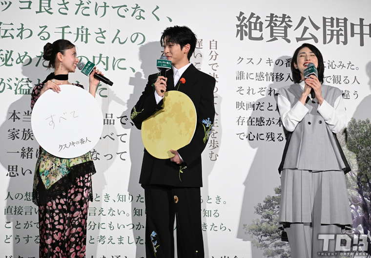 父親・寿明(大沢たかお)の秘密を探るため玲斗に調査協力をお願いする大学生・佐治優美役を演じている齋藤、この日舞台上に設置された観客からの感想が書かれたバックパネルの『絵が綺麗で引き込まれました』という言葉に「東野さんの原作を読んでて頭に浮かべた映像も文章が綺麗だから綺麗な絵がなんとなく浮かぶけど、自分の中にはない美しさみたいなものが大きいスクリーンで見るとすごい圧倒されるなと思う」としみじみ、「今回は集まったキャストの皆さんも素晴らしいですし、あとは監督はじめスタッフの皆さんも本当に素晴らしい絵と音楽といろんなものを作っていただいて全てが組み合わさって皆さんに届いてるんだなってのがとても嬉しいです」と公開を迎えた喜びを嬉しそうに語った。