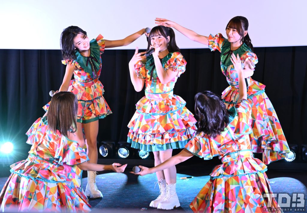 この日のイベントには元・日向坂46の齊藤京子、私立恵比寿中学の現役メンバー仲村悠菜、『よこがお』から約6年ぶりの深田組参加となる俳優・小川未祐、元・STU48でキャプテンを務めた経験もある今村美月、いぎなり東北産の現役メンバー桜ひなのの5名で構成された劇中アイドルグループ「ハッピー☆ファンファーレ」(通称:「ハピ☆ファン」)が再集結。完成度の高さに話題が集まっている劇中歌『秒速ラヴァー』と『君色ナミダ』の2曲を劇中衣装で生披露した。