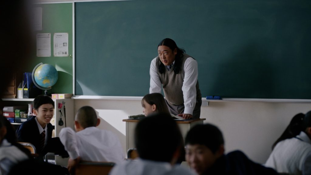 また、本CMで教師役を演じているのは、お笑いトリオ「ロバート」の秋山竜次。前作に続いての出演となった秋山だが、前作とは大胆にイメージを変え、真ん中分けの長髪スタイルで教師役に。「ロン毛イコール教師というイメージが強いので、ロン毛ではあるけれど、逆にそのイメージからできるだけ離れるように、いろんな注意を払いながら演じました」と、教壇での姿勢や声色など細かな部分までこだわって役作りした秋山。「CMの第一声は秋山さんから始まるんです。秋山さんの空気が(CM全体を)支配しているんです」と堺も絶賛の秋山先生の演技にも注目だ。