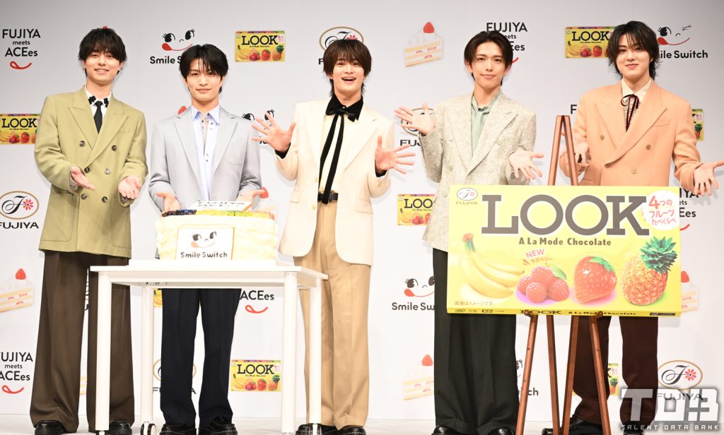 不二家はロングセラーチョコレート「ルック」と「ケーキ(洋菓子)」の共同プロモーション「Smile Switch(スマイル・スイッチ)」のブランドキャラクターに、ACEes(浮所飛貴、那須雄登、作間龍斗、深田竜生、佐藤龍我)を起用。そしてACEesが出演する新CM『不二家ルック おいしい、はじめまして。』篇と、『不二家洋菓子店 おいしい、はじめまして。』篇が2026年2月7日(土)より順次TV放映を開始する。