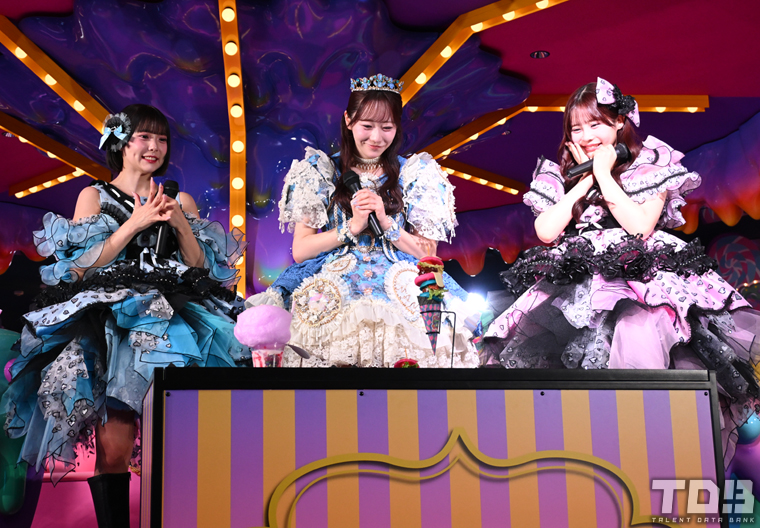 イベントでは『KAWAII MONSTER LAND – HARAJUKU -』で提供されるミニハンバーガー、チョッピーケーキ、ドリンクを試食する場面があった。