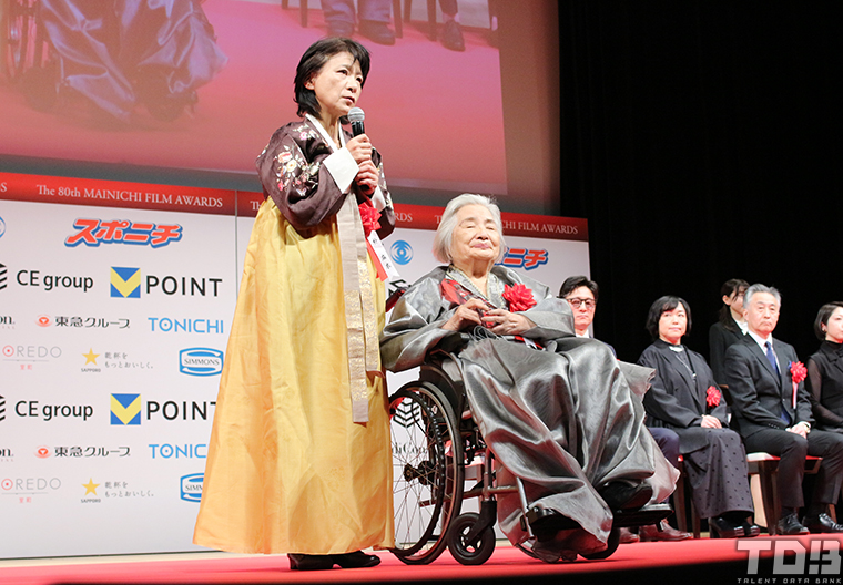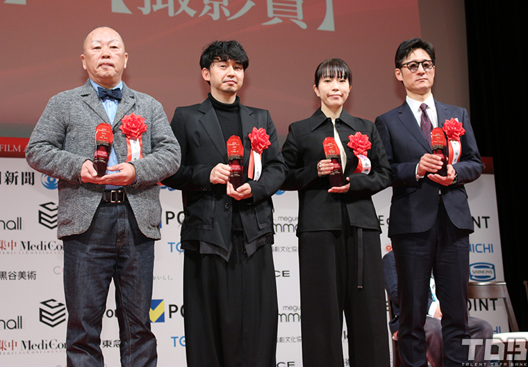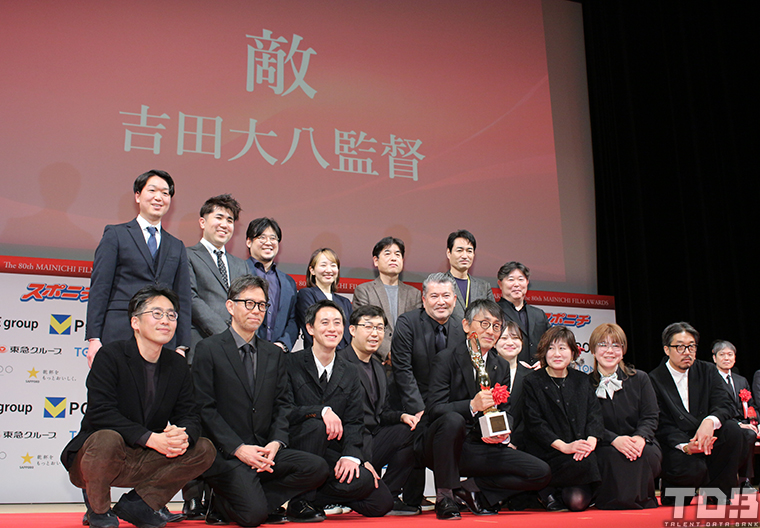 日本映画大賞に輝いたのは、吉田大八監督の『敵』。トロフィー贈呈式にはスタッフも駆けつけ、一人ずつ自己紹介する場面もあり、吉田監督は「そうそうたる映画の中で小さな作品に光を当てていただいてありがとうございました」と挨拶。