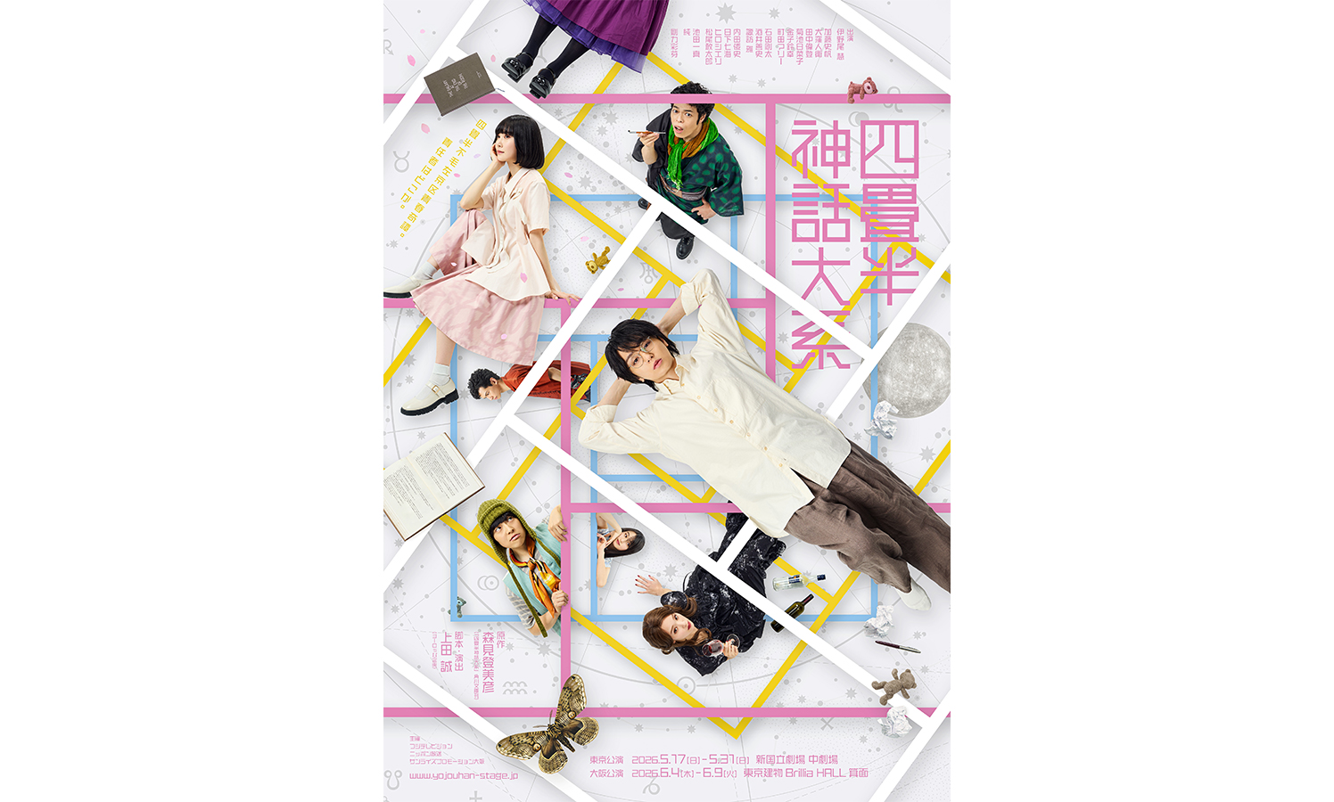 京都を作品の主な舞台とし、独自の語り口で日本の新しいファンタジーを切り拓く話題の作家・森見登美彦の大人気小説「四畳半神話大系」。京都の「腐れ大学生」が同時に生きる並行世界が描かれる舞台化困難と思われる小説を、2010年にフジテレビ系の深夜アニメ枠、ノイタミナで放送されたアニメ「四畳半神話大系」で脚本を担当したヨーロッパ企画の上田誠による脚本・演出で、初舞台化。
