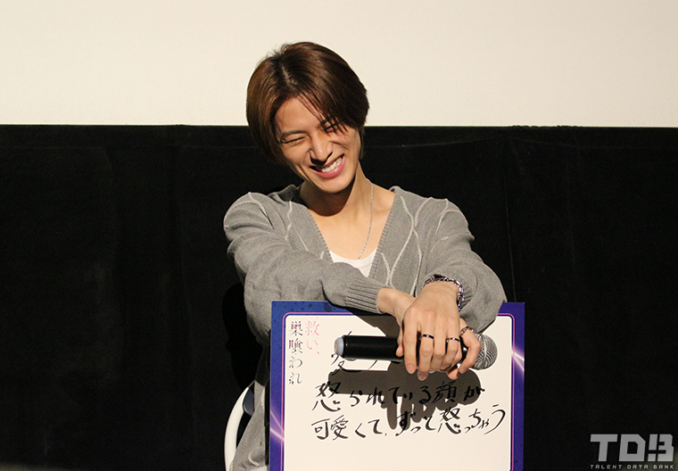 初回放送を前にトークイベントが行われ、作品にちなみ“愛か、支配か。ギリギリ境界線アンケート”を実施。恋愛における究極の選択をテーマに、“これは愛だ”というシチュエーションをそれぞれ発表することに。最後に会場へ来ている観客が“これは愛だ”と思った答えを拍手で判定する。愛ではなく支配だと認定されてしまったら、千秋のヤンデレ決め台詞を披露する。