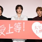 ついに公開を迎えた感想を聞かれた山中は「すごくポップコーンの匂いがして映画見てたんだなって感じが伝わる」と微笑みながら、「解禁も早めの段階からしてたので皆さんお待たせしました。やっとお見せできるってワクワクが昨日頃からずっとありまして、映画館の情報見たらたくさん入ってくださってるのを見てすごく僕ら一同ホッとしてますし何か響いてたらいいなと思ってます」と嬉しそうに挨拶。一方髙松は地元・湘南でも公開してることに触れ「僕の友人が見に行ったらしく『すごい良かった』って言ってくれた。皆さんいっぱい来てくださったというのも聞きましたすごい今ホッとしてます」と安堵した表情を浮かべた。