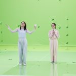 川口さんと清原さんは「おはようございます!よろしくお願いします!」と元気に現場スタッフに挨拶し、スタジオに登場。CMの構成や撮影内容について説明を受け、青とピンクの衣装が華やかな印象を与える中、撮影がスタートしました。