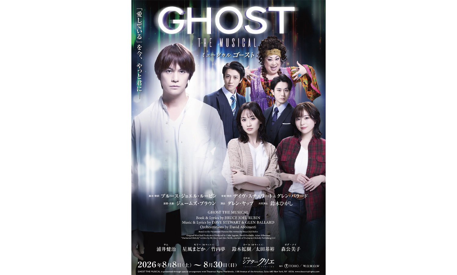 ミュージカル『ゴースト』は、2026年8月8日(土)から8月30日(日)まで東京・日比谷シアタークリエにて、その後、愛知、大阪、福岡、北千住で上演される。