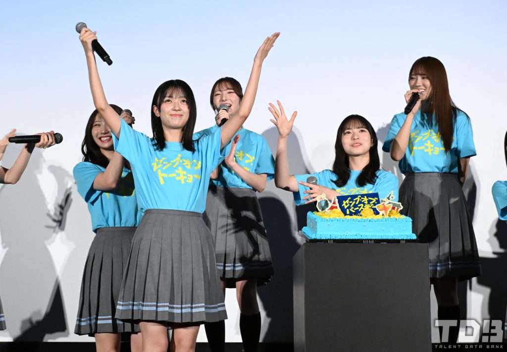 またフォトセッションではサプライズ演出が行われる場面も。MCから「ハイ、チーズ!」と合図がかかるとスクリーンに突如ムービーが上映。約2分間の映像で続編『ゼンブ・オブ・ワールド』の製作決定がサプライズ発表されると何も知らされていなかったメンバーは「キャー!」と飛び跳ねながら大喜び。思わぬサプライズに涙を流すメンバーや円陣を組みだすメンバーなど興奮冷めやらぬ様子で全員笑顔を弾けさせていた。