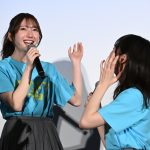 この日の舞台挨拶はそんなバースデイ記念上映の最終回ということで、本作に出演した正源司陽子、渡辺莉奈、藤嶌果歩、石塚瑶季、小西夏菜実、竹内希来里、平尾帆夏、平岡海月、清水理央、宮地すみれ、山下葉留花のメンバー11人が登場した。