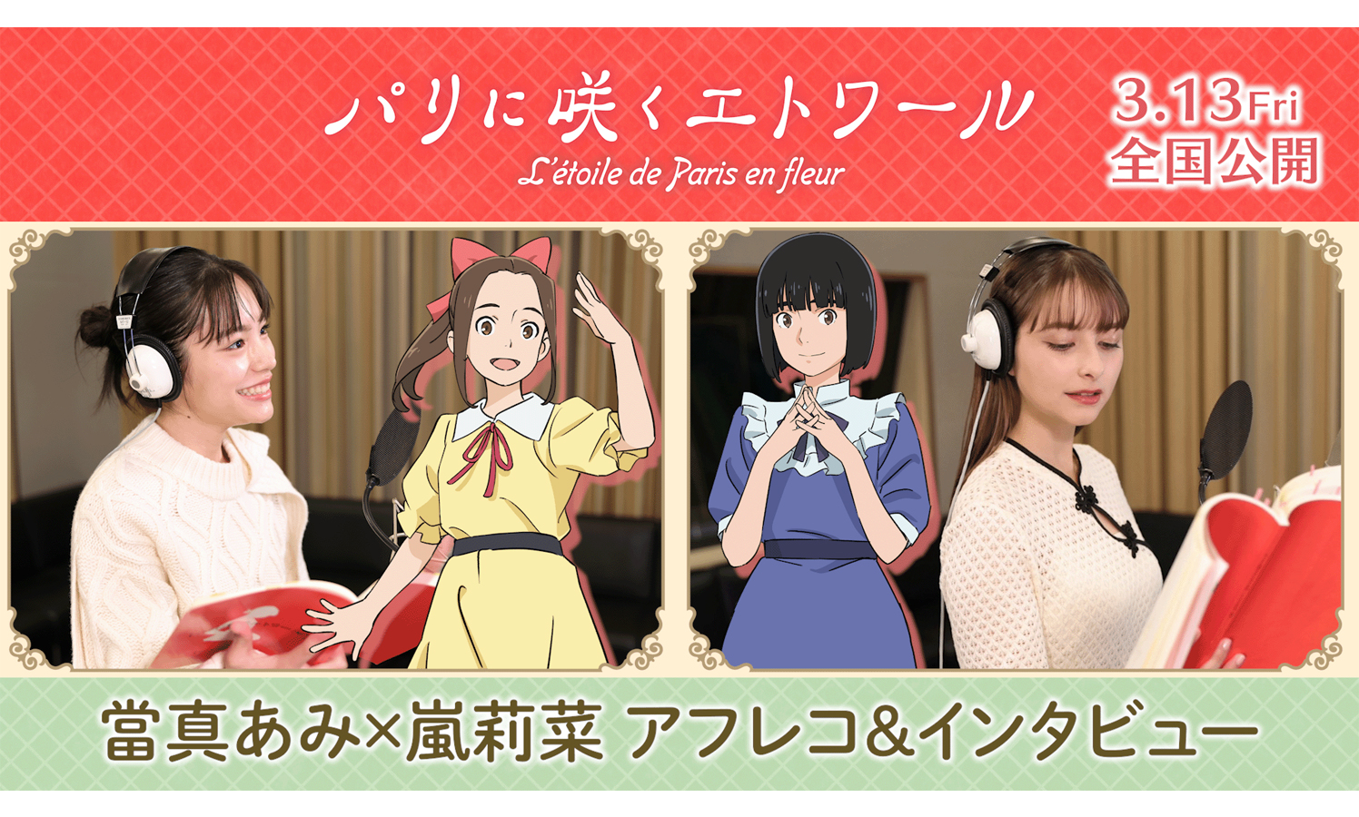 當真は「声をかけていただいた時はすごく嬉しかったです。すごくワクワクしていたというか、楽しみでした」と当時を振り返る。一方、嵐も「まさか、声のお仕事をさせていただけるとは思わなかったので、最初は本当に驚きました」と語り、本作へのまっすぐな気持ちを明かす。台本を読んだ際の印象について、當真は「フジコが絵を描くのが好きで、パリに憧れて、自分一人で世界に飛び出していくのは、すごく勇気がいることだなって思っていました」とコメント。さらに、今とは異なる時代背景の中で、自分の言葉をはっきりと発していくフジコの姿に強さを感じたと話している。実際のアフレコでは、“何度も言ってるでしょ?パリで洋画の勉強がしたかったの。”と夢を語るシーンなど、セリフに丁寧に向き合う姿が映し出されている。千鶴について嵐は、「薙刀(ナギナタ)道場の一人娘で物静かなんですけど、フジコと出会うことで、自分の感情を出していくようになる」と説明。「私も幼少期にバレエを習っていたので、千鶴と共通点も感じて、ぜひ演じてみたいなと思いました」と役への親近感を明かしていた。アフレコ映像では、“あれは・・・・・・夢中だったの”と揺れる心情を吐露するシーンも映し出され、抑えていた感情があふれ出す瞬間を繊細に表現している。