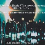この配信番組には、センターを務める藤吉夏鈴、田村保乃、的野美青、村山美羽、浅井恋乃未、勝又春の6名が出演。当日にリリースとなる最新シングル『The growing up train』の魅力を6人がたっぷり解説する。