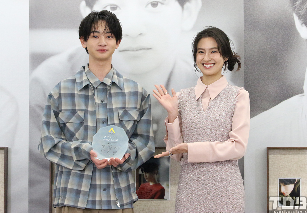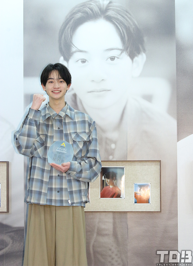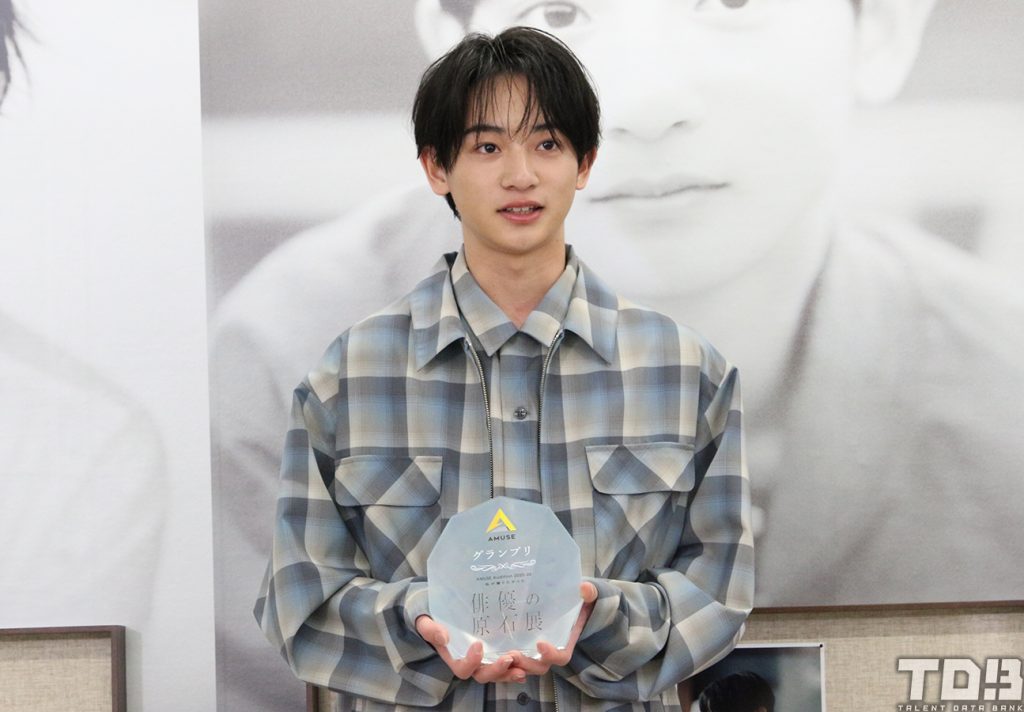 オーディションのアンバサダーを務める恒松祐里よりトロフィーを贈呈され、「まさか自分がグランプリを獲れると思っていなくて、まだ実感は湧いていないんですけど、オーディションを受ける時に支えてくれたお母さん、家族みんなに感謝して、これから俳優のお仕事を頑張っていきたいなと思っています」と、受賞の喜びを語る。