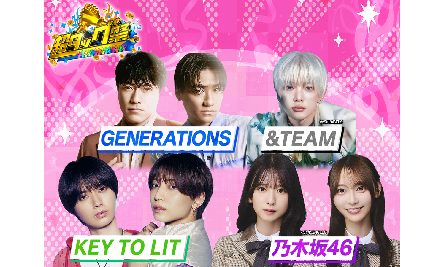 今回新たに、人気アーティストや俳優など豪華ゲストの出演が続々決定。KEY TO LITの井上瑞稀、中村嶺亜、乃木坂46の菅原咲月、弓木奈於、GENERATIONSの小森隼、中務裕太、&TEAMのHARUA、さらに俳優の芳根京子、小手伸也が参戦する。そして渋谷凪咲、松田好花、とにかく明るい安村の出演が決定し、ジャンルを超えたにぎやかな顔ぶれが集結する。