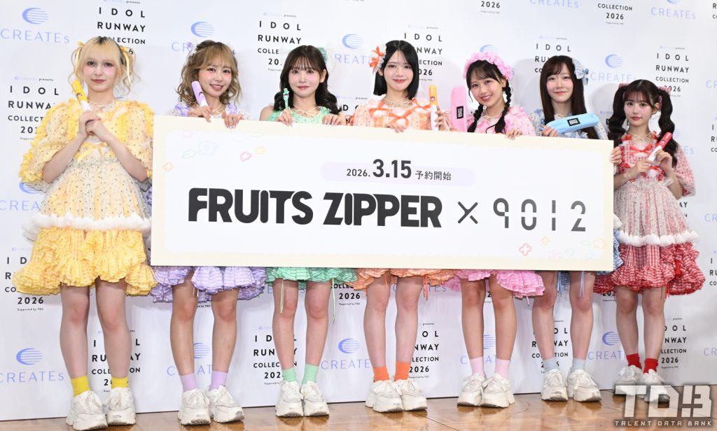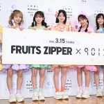 この日はコラボ商品の発売を記念した記者発表会が実施、FRUITS ZIPPERの月足天音、鎮西寿々歌、櫻井優衣、仲川瑠夏、真中まな、松本かれん、早瀬ノエルがゲストとして登場した。