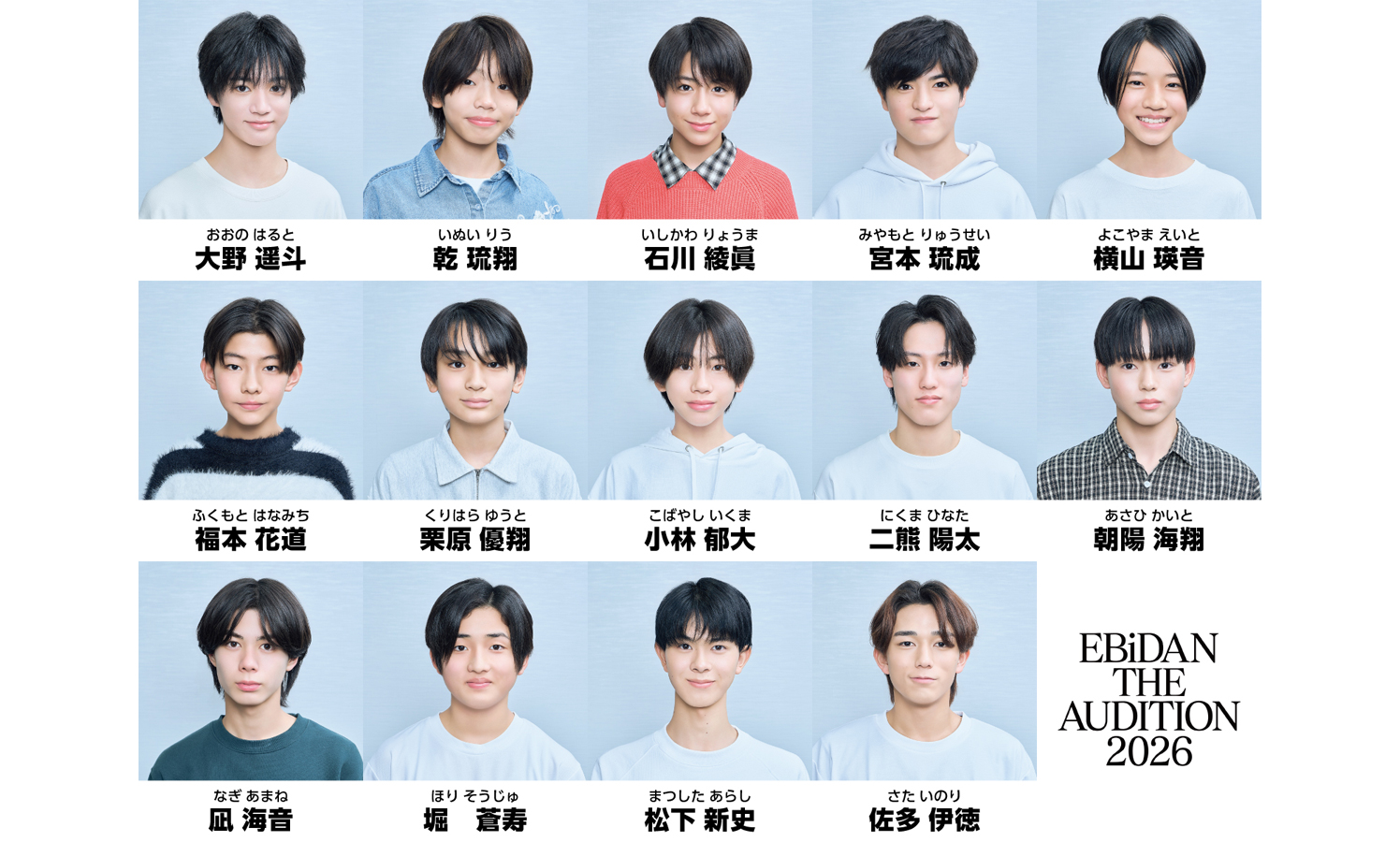 4⽉9⽇(⽊)から放送される『EBiDAN THE AUDITION2026』は、超特急、M!LKなど個性豊かなグループが在籍し、2026年に15周年を迎えるEBiDANの新グループオーディション。一次審査、⼆次審査、三次審査、最終審査を通して、歌唱⼒・パフォーマンス⼒・アイドル性・⼈間性など様々な観点で審査し、「EBiDAN の原点回帰」を合⾔葉に、新グループメンバーを探し出す。