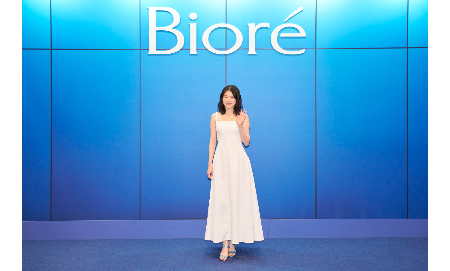 白いドレス姿でブルーカーペットに登場した出口。ステージ登壇時には韓国語で挨拶をすると会場からは大きな拍手が。またトークセッションでは、普段からビオレUVを愛用しているという出口に今回韓国で新発売される「ビオレUV アクアリッチ ウォータリーエッセンス」をステージで実際に試す場面も。使用した感想を出口は「とてもみずみずしく気に入っています。肌にスッとなじんでいて、塗った肌がつやつやしているのがわかります」とその使用感について語った。