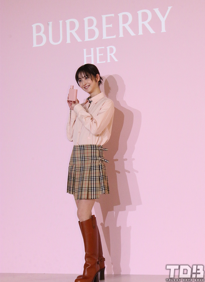 春らしいピンクのシャツにミニスカート姿で登場した佐々木は、『BURBERRY HER PARFUM』の香りを纏い、「とても華やかな香りに中に上品な甘さがあって、奥行きのある香りだなと感じました]と感想を述べ、使いたいシチュエーションを「これから暖かくなる季節なので、お散歩とかに行きたいなと思います」とコメント。
