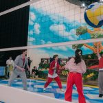 巨大化したバレーボールで得点の的を狙うバレーボールシューティングゲームでは、チーム全員で力を合わせて高得点を狙う。