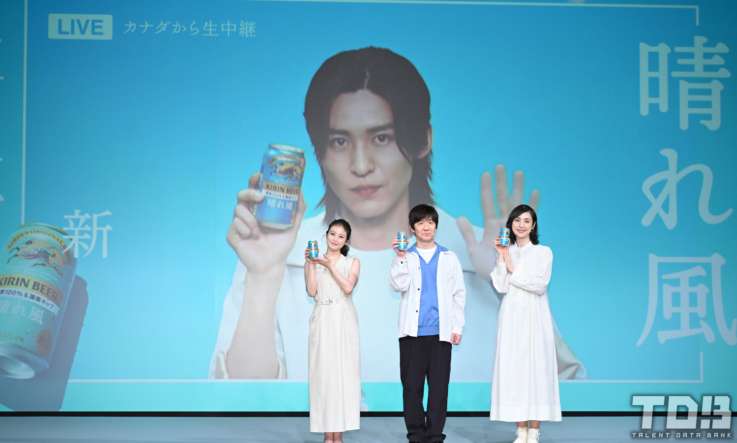 その後、発表会ではリニューアルした『晴れ風』を手に持ちキャスト陣で乾杯。飲みごたえと飲みやすさの両立をさらに追求し、すっきりとした飲み口と締まりのよい後味へと進化した『晴れ風』を飲んだ目黒は「まさかカナダで飲めると思わなかったのでこんな機会をありがとうございます」と感激、天海は「はやく飲んでいただきたい」とアピール、「発売から皆さんとご一緒させていただいていたので、今日はどうしても皆さんと乾杯がしたかったので嬉しかった」とカナダから喜びを伝えていた。
