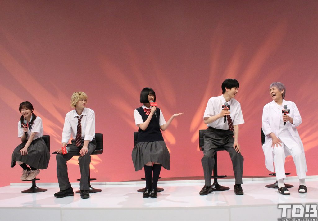 すると根岸から「本当に漫画から飛び出たみたいだよね。そのまんまよね」と言葉があり、続けて本島からも「本番になる前まではその日のお昼ご飯や差し入れの話とかをしているんですけど、本番になると鳥肌が立っちゃうぐらい恐ろしいお芝居をされるので」と現場での様子が明かされると、「嬉しいです。ヘアメイクさんたちのお陰です」と恐縮する原。さらに窪塚から「るなさん、カッケーっす」と、ケンショーのセリフで称賛されると、「ありがとう。貴重なセリフを言ってくれて…良いんですか?褒め褒めタイムもらえちゃって。嬉しいです」と嬉しそうに微笑む原だった。