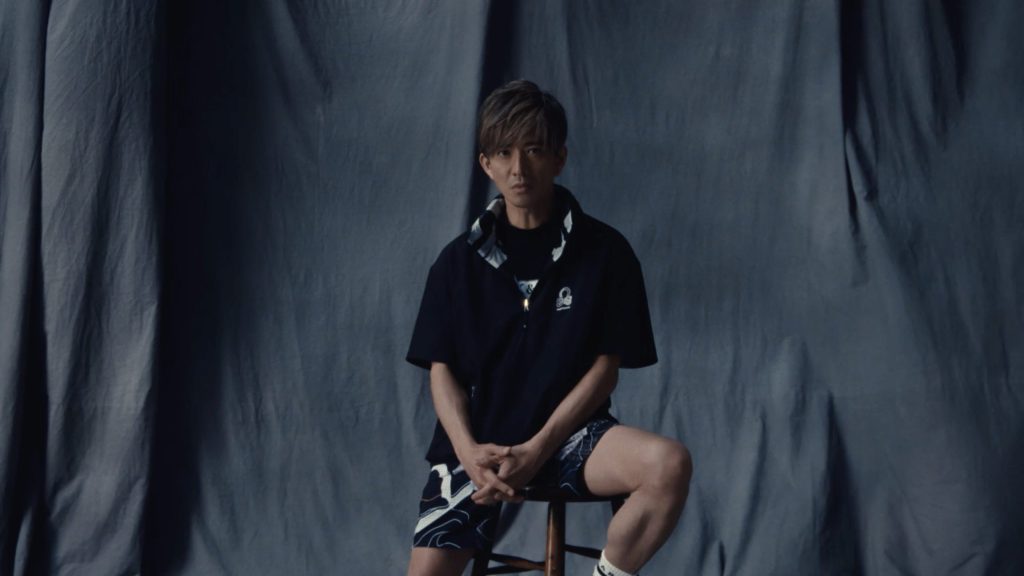 新CM『LEGACY OF THE ICON』編の撮影は、最大高さ10m、幅12mの巨大な幕を背景に行われました。「澄み渡る空」「希望の太陽」「まばゆい水面」「母なる大地」をイメージした4シーンに加え、冒頭のホワイトと、最後のグレーを加えた計6枚の巨大な幕が、シーンごとに掛け替えられていきます。その巨大な幕がダイナミックに揺れ動く中、最新コレクションを着用して華麗なスイングを披露する木村さん。ウェアが最も美しく見える角度や身体の向きを自ら調整するプロフェッショナルな視点で撮影に臨まれていました。パターを持つシーンではグローブを着けるのか着けないのか、はたまたポケットに入れるのか…。グローブを着けているのであればボールを持っている方が自然ではないか…など、映像の完成度を高めるべく細部までこだわっていた木村さん。一方で、大地をイメージした木々の生い茂る森の中を背景にしたシーンでは、「(背景は)きれいだけど、リアルに言うと、打ち込んだ人ですよね。(この背景でクラブを)持つんだったら3本!ピッチングと7番と5番を持ったほうがいい(笑)」と、ユーモアを交えてスタッフと談笑する場面も。緊張感のある撮影の中でも、楽しむ気持ちを忘れない木村さんでした。