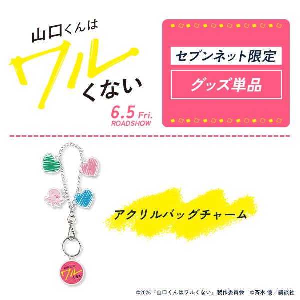 また、セブンネット限定グッズとグッズ付きムビチケ前売券が絶賛販売中。セブンネット限定グッズは2way仕様のアクリルスタンドキーホルダーとアクリルバッグチャームの2種類。