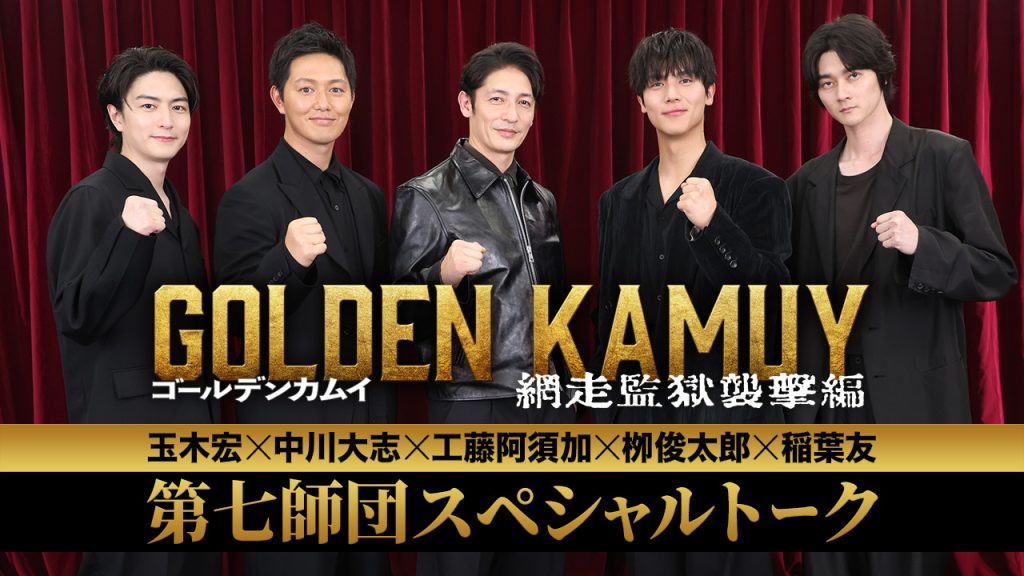 杉元佐一(山﨑賢人)とアシㇼパ(山田杏奈)と同じく、金塊の在りかを探す第七師団の鶴見篤四郎中尉を演じた、玉木宏、そして鶴見中尉が率いる第七師団のメンバー、鯉登音之進役・中川大志、月島基役・工藤阿須加、二階堂浩平役・栁俊太郎、宇佐美時重役・稲葉友の5名のスペシャルトークが実現!