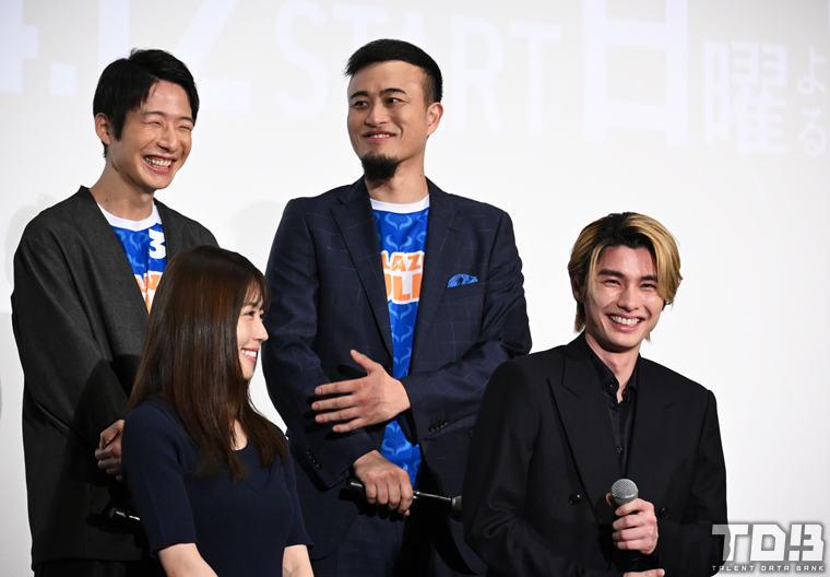 また車いすラグビーチーム・シャークヘッドのヘッドコーチ役として選手を演じるキャストの姿を間近で見てきたという安田はキャスト陣の体つきの変化に言及。「1試合で5日(撮影に)使うんですよ?腕も太くなります。オールスター感謝祭だって5時間で終わるんですよ。5日もやれば腕は太くなりますよ」とキャスト陣の頑張りを称賛すると、ノボせもんなべは現場で本田から「太くなりました?どうですか?」と腕の変化を聞かれたそうで、実際に触って太くなってることに驚くと「『ほんとですか!嬉しい!』って言いながらプロテインを毎日飲んでる。それが可愛くて」と思わぬ暴露をされ本田は恥ずかしそうに赤面していた。