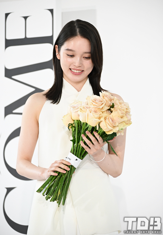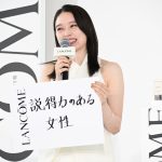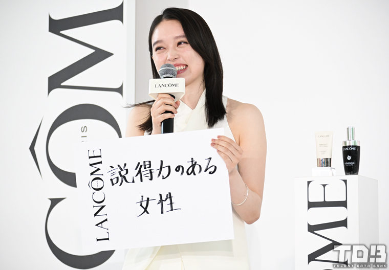 さらに自身が目指す理想の女性像を聞かれると『説得力のある女性』とフリップを掲げ、「学びや経験をしっかり積み重ねていきその積み重ねが見れるような説得力のある人になりたいです。そして内面と外見を磨いてランコムのアンバサダーであることの説得力を持った人になれるよう精一杯頑張りたい」とアンバサダーとしての意気込みを語る。するとここでMCから「文字も上手ですしバランスもすごくいいですね」とフリップの文字を褒められると、思いがけない称賛に照れた様子で笑顔をみせた。