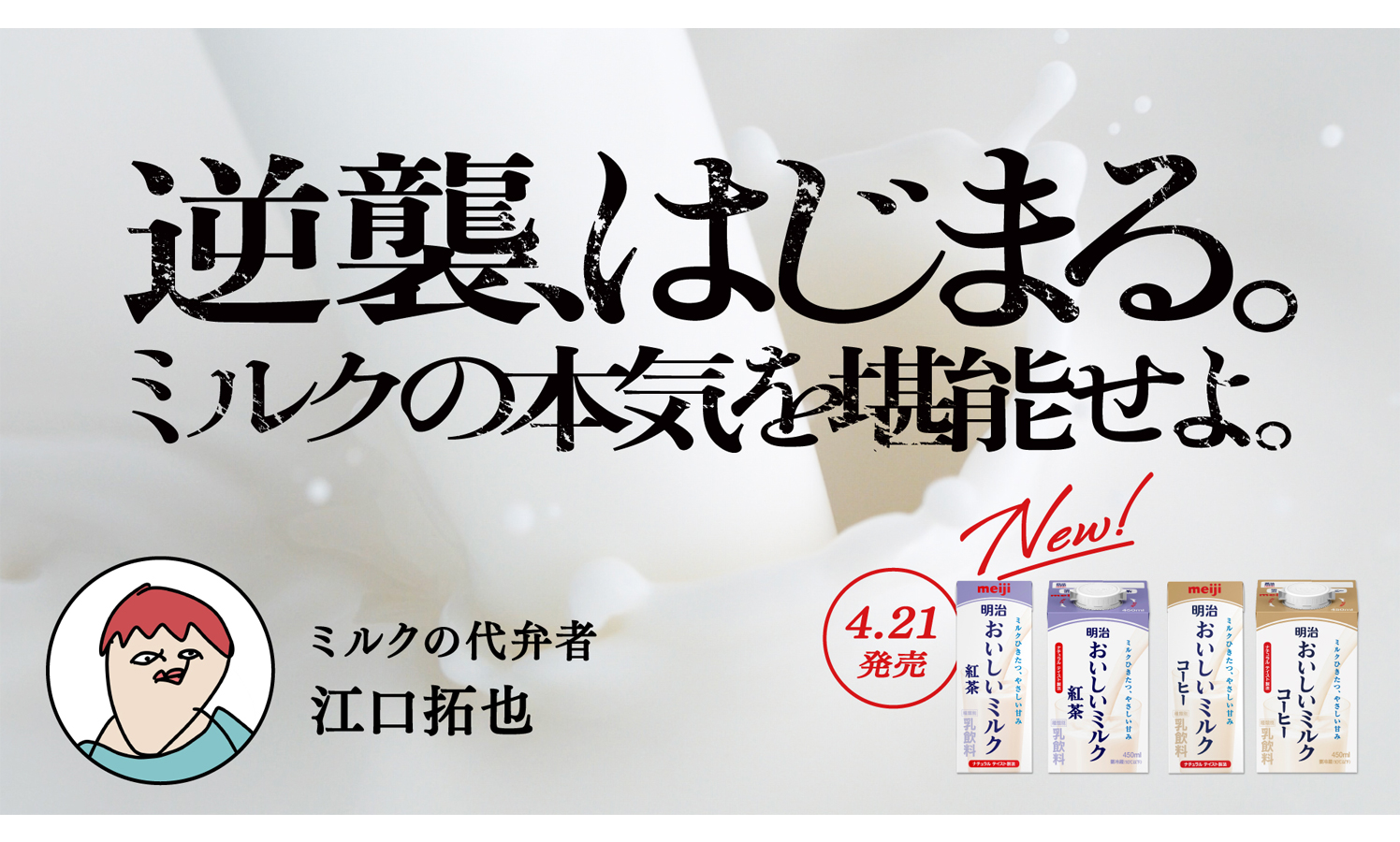 江口のナレーションによるWEB動画の公開をはじめ、江口のユニークな点でもある自画像を用いたSNSキャンペーンや江口から招待状が届くインフルエンサー施策などを通じて、ミルクのおいしさや存在感を多角的に発信していく。