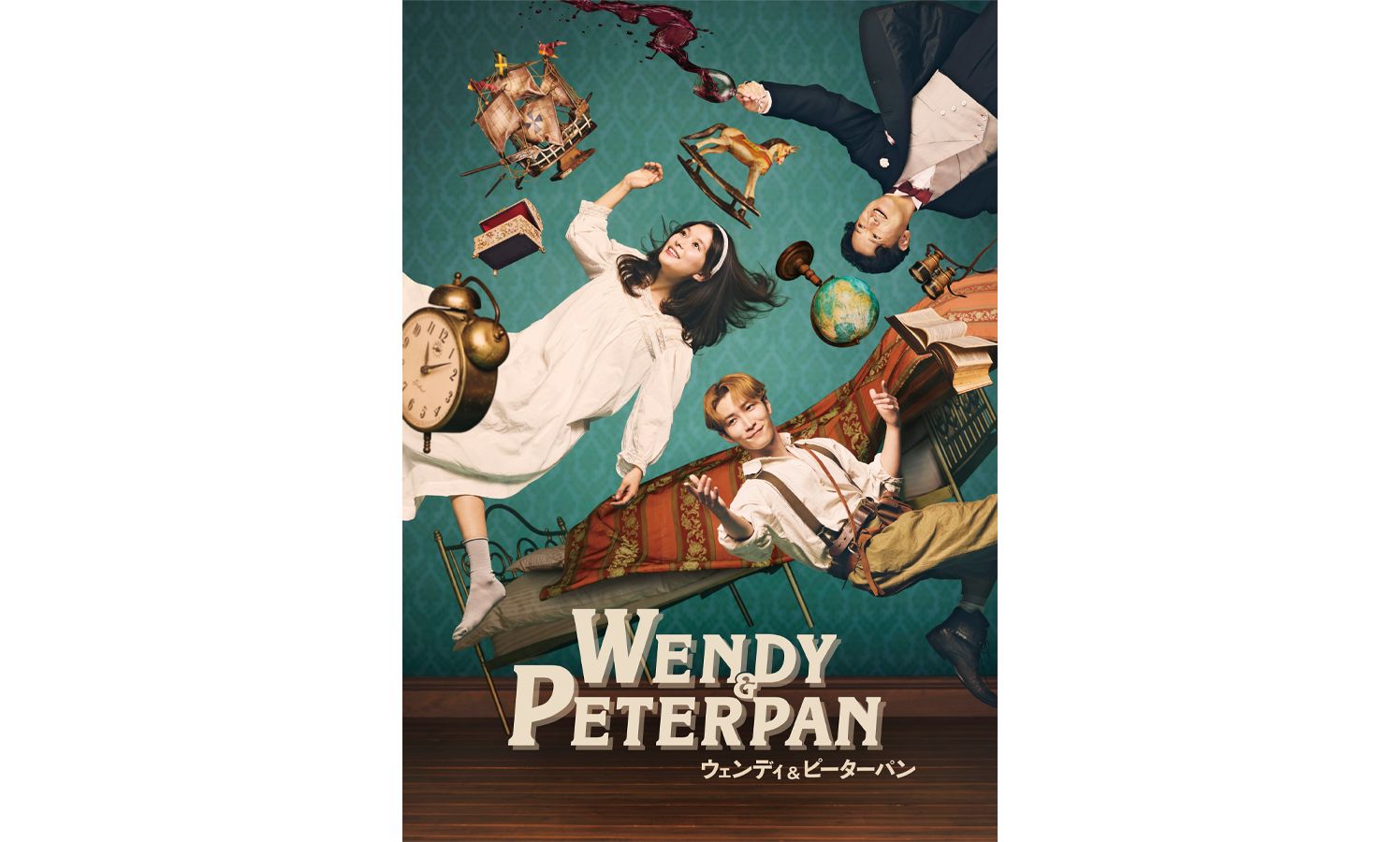 この度公開された公演ビジュアルでは、物語のはじまりである子供部屋からネバーランドへ——ウェンディがピーターパンに導かれ、冒険へと踏み出す瞬間を描いている。ダーリング氏も巻き込みながら、浮遊する身体や宙に舞うモチーフが、現実からファンタジーの世界へと移り変わる気配と、マジカルに満ちた冒険の幕開けを予感させる。