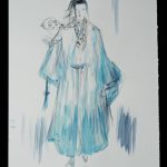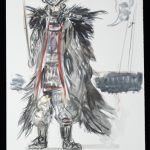 旧知のプロデューサーからこの作品のお話をいただき、蘆名盛隆という世に知られていない実在の武将のドラマチックな実話を映画にするチャレンジ、絶世の美男子と謳われた美しい容姿を持った武将の儚い人生と人間模様に惹かれ、お引き受けしました。デザインする上で、まずキャラクターの「色」をイメージしました。主人公・蘆名盛隆は儚さと透明感・少年と大人の両面性を表す「薄い青(ライトプルー)」、同盟相手の佐竹義重は成熟した力強さの「濃い青(ミッドナイトブルー)」、側室の彦姫は数奇な運命でも心に炎を灯している「赤(レッド)」を用いてます。盛隆と義重の甲冑・刀は、盛隆は霊獣で天空の王者と言われる雪豹をイメージし西洋甲冑の要素も取り入れ、義重の甲冑は現物が毛虫を模した甲冑なので前へひたすら進む強さをデザインしてみました。 この度出来上がった作品は、原作者堀江さんの深い想いと松田監督の情熱・キャストの皆様の熱演で、リアリティ溢れる素晴らしい作品になったと思いますし、お手伝いできて嬉しく思っています。この作品が世界中で多くの方々にご覧いただける事を願っています。