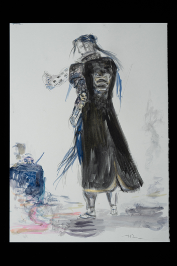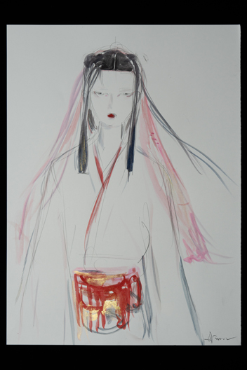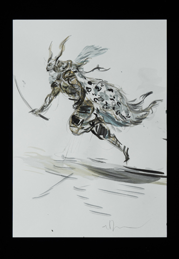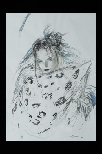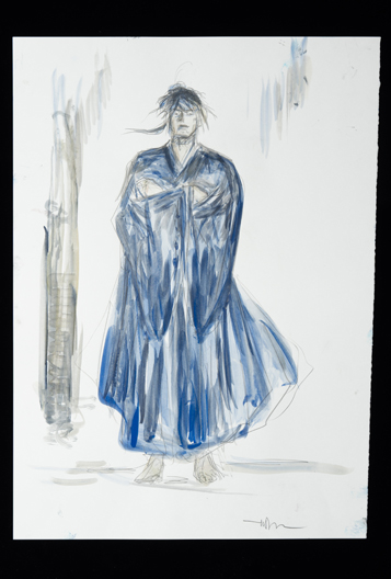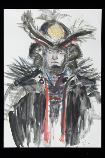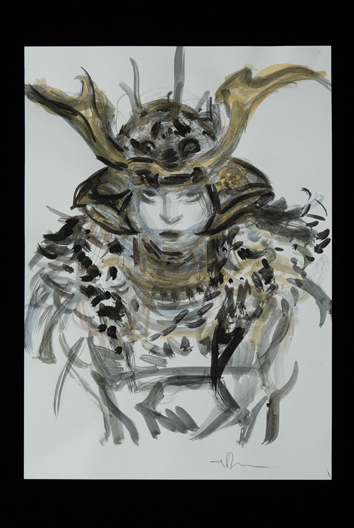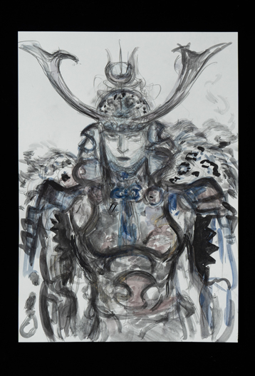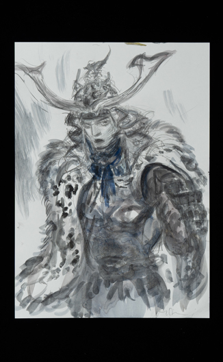 旧知のプロデューサーからこの作品のお話をいただき、蘆名盛隆という世に知られていない実在の武将のドラマチックな実話を映画にするチャレンジ、絶世の美男子と謳われた美しい容姿を持った武将の儚い人生と人間模様に惹かれ、お引き受けしました。デザインする上で、まずキャラクターの「色」をイメージしました。主人公・蘆名盛隆は儚さと透明感・少年と大人の両面性を表す「薄い青(ライトプルー)」、同盟相手の佐竹義重は成熟した力強さの「濃い青(ミッドナイトブルー)」、側室の彦姫は数奇な運命でも心に炎を灯している「赤(レッド)」を用いてます。盛隆と義重の甲冑・刀は、盛隆は霊獣で天空の王者と言われる雪豹をイメージし西洋甲冑の要素も取り入れ、義重の甲冑は現物が毛虫を模した甲冑なので前へひたすら進む強さをデザインしてみました。 この度出来上がった作品は、原作者堀江さんの深い想いと松田監督の情熱・キャストの皆様の熱演で、リアリティ溢れる素晴らしい作品になったと思いますし、お手伝いできて嬉しく思っています。この作品が世界中で多くの方々にご覧いただける事を願っています。