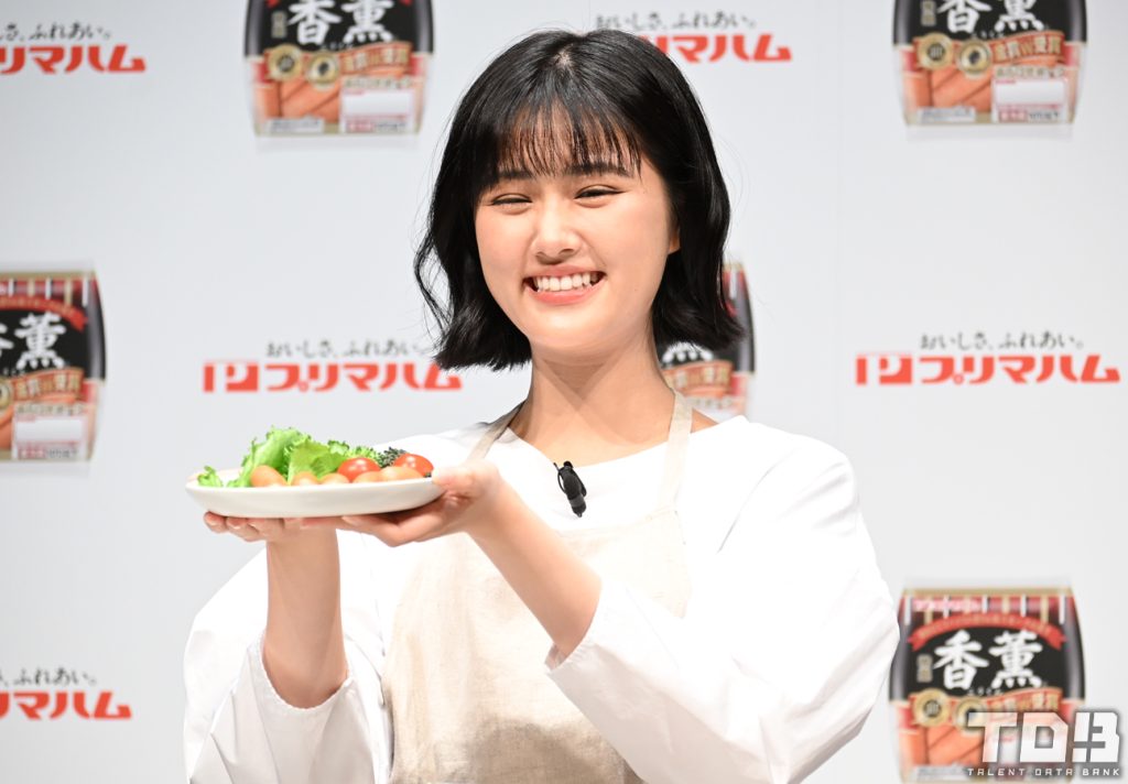 新鮮なエプロン姿を披露しながら手に取った『香薫』の袋を開封して溢れでるスモークの匂いを嗅いでニッコリ。そんな原は日頃あまり料理はしないそうだが「『香薫』は焼いただけでめちゃくちゃ美味しいので朝食べたりしますね」と真剣な表情で炒める。数分が経ち良い色に焼きあがったところで皿に盛りつけて完成させると原はほっとした顔で微笑んだ。そして実際に調理して完成させた『香薫』を頬張った原は「いつも通り最高に美味しいです」と安定の美味しさを噛みしめていた。