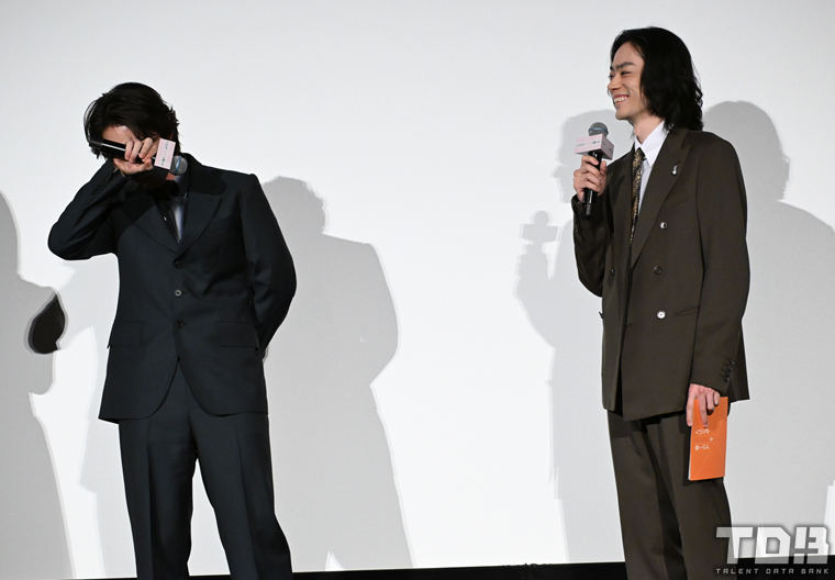 また富久信介を演じる細田とそんな信介のボクシングジムの先輩を演じた菅田ふたりの信頼関係を褒める声もたくさんあるそうで細田は「練習のタイミングから菅田さんとがっつり何回もご一緒させていただいた。菅田さんがミット持ってくださってそこに僕が打ち込むってそういったことを練習段階から菅田さんが言ってくださいました」と菅田のリードで関係性が育まれたことを明かすも、菅田は「一緒に練習をして汗かいてちょっと雑談でもできたらいいなと思って『この後ってなんか予定とかあったりする?』って言ったら『ちょっとお母さんとご飯行くんで』ってその日ご飯は行けなかった」と寂しそうな顔で断られたことをぶっちゃけ。その発言に細田は「それずっと引きずってたんですよ。菅田さんも覚えてらっしゃったんだ」と慌てたように驚くと菅田は「僕の心は冷えきってます」とぽつり。そんな菅田の姿をみて慌てたように細田は「勘弁してください」と苦笑いで会場を笑わせつつもふたりの仲の良さが垣間見える瞬間だった。