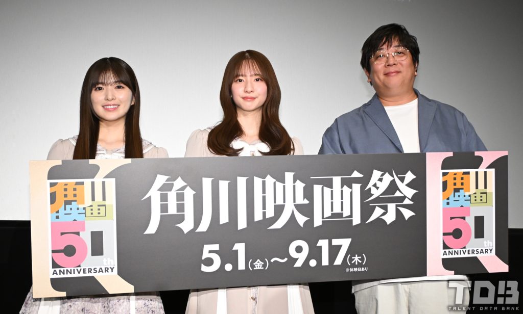 この日は『角川映画祭』の5月1日(金)からの上映に先駆け、目玉作品の1本である映画『時をかける少女 4K デジタル修復版』(監督:大林宣彦)の先行上映会&スペシャルイベントが実施。上映後の舞台挨拶にスペシャルゲストとして乃木坂46の小川彩と菅原咲月が登壇した。