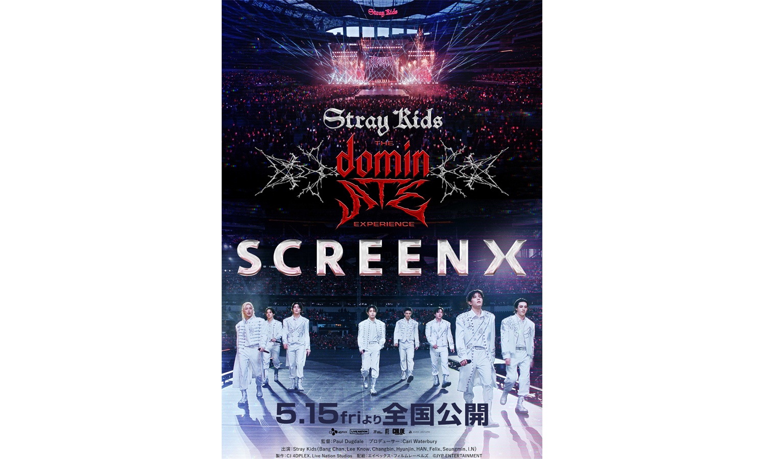この度、SCREENX&4DXのスペシャルビジュアルが日本初解禁。アメリカ・ロサンゼルスの巨大会場 SoFiスタジアムの広大なステージに、Stray Kidsが堂々と立つ姿は、これまでの彼らの軌跡を感じさせるエモーショナルなポスターに仕上がっている。