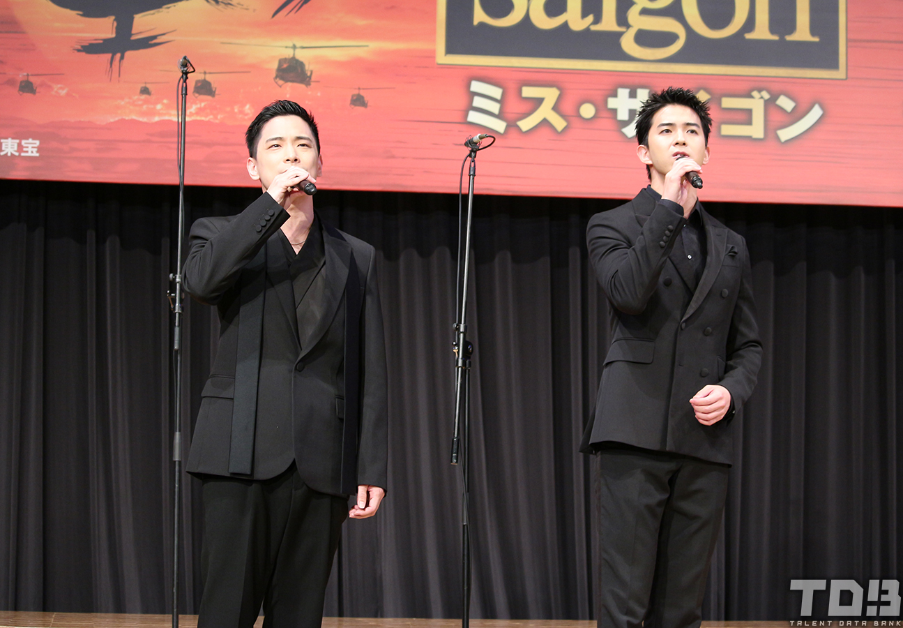 トゥイ役の岡シモンは「高校生の時に初めて帝国劇場で『ミス・サイゴン』を観させていただき、すぐにこの作品の虜になりまして、受験勉強の合間を縫っては音楽を聞いたり、音楽室で大声で『ミス・サイゴン』の歌を歌ったりしていました。今、こうしてこの作品に参加させていただけること、皆様とご一緒できることが本当に光栄に思います」と喜びを語り、製作発表は歌唱のみの参加となった吉田広大は「初めてこの作品に携わらせていただけることにとても興奮しているとともに、偉大な作品に関われることを光栄に感じています。実直に作品と向き合い、トゥイとしてただただ全力で生きていけたらと思います」とメッセージを寄せた。