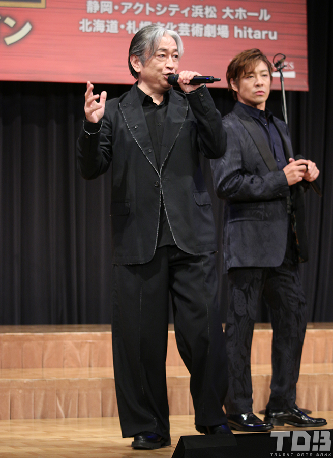 ジョン役のチェ・ウヒョクは「初めまして。日本語で歌うのは本当に難しいですが、今も日本語の勉強も一生懸命続けています。皆さんご期待ください」とメッセージを送り、金本泰潤は「ジョンは二人とも初めてということで、袖で肩を揉み合いながら今日の歌唱を頑張りました。2024年まで劇団四季におりまして、そこから音楽活動をやると、去年飛び出したんですけど、だから今ここにいるのが本当に嬉しいことであり不思議がすごい強くて、本当に素敵な皆様とご一緒できることを楽しみにしております」と、初参加同士で支え合っていることを明かす。