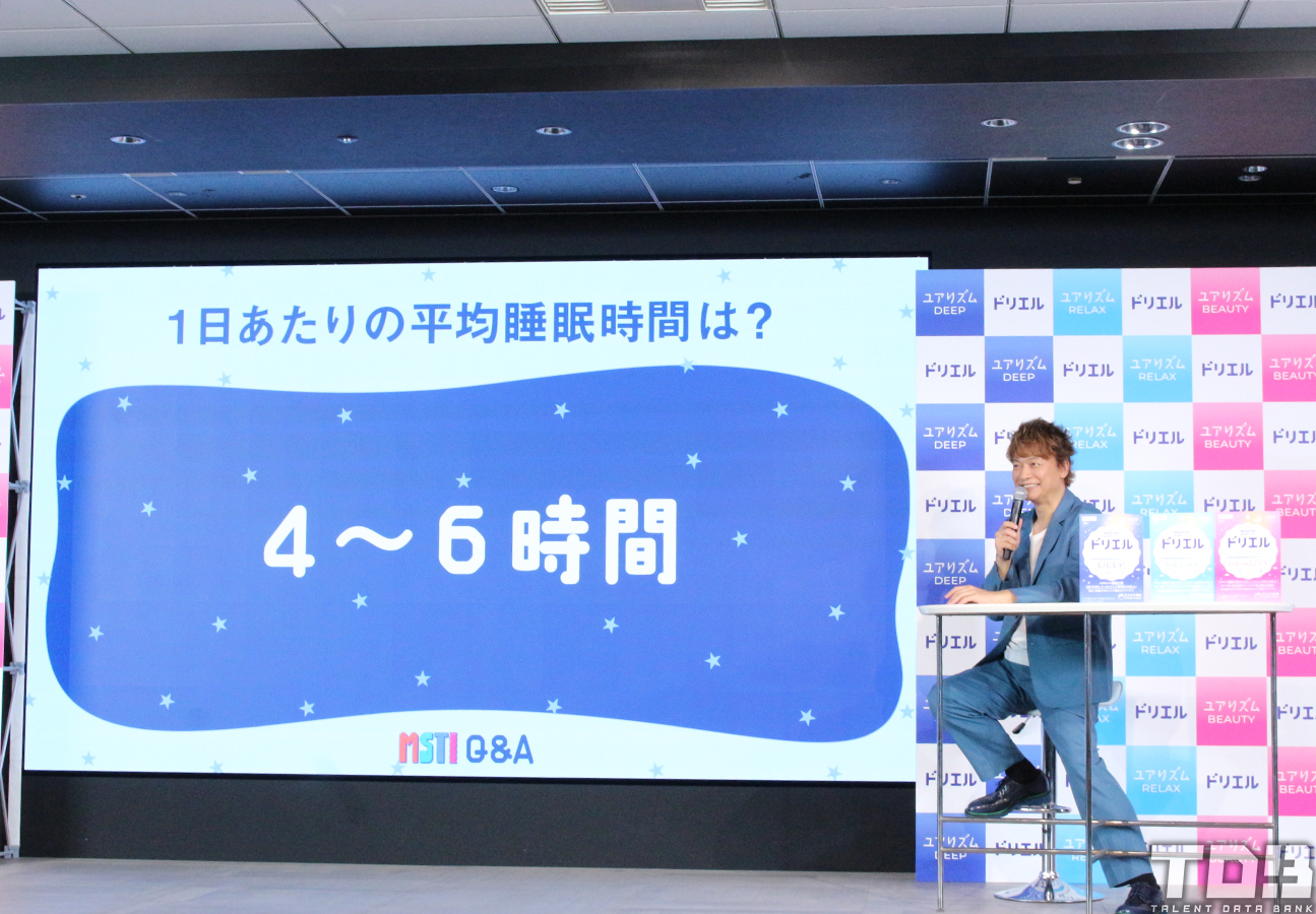 新CM発表会では、生まれ持った睡眠タイプと現在の睡眠コンディションを知ることができる「MSTI」で香取の睡眠タイプも明らかになった。