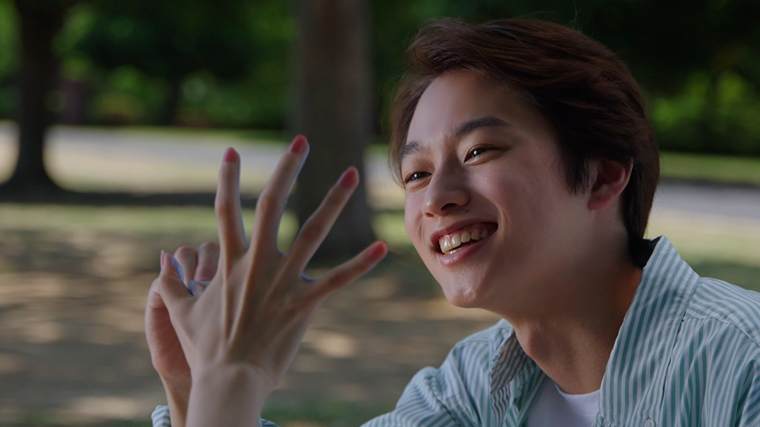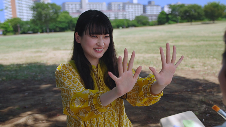 今回、SNSで話題の「カップル手形アート」に挑戦した二人。実際に本人達が手のひらに絵の具を塗って手形アートを作る様子が、ペアリングとともに瑞々しく描かれる。
